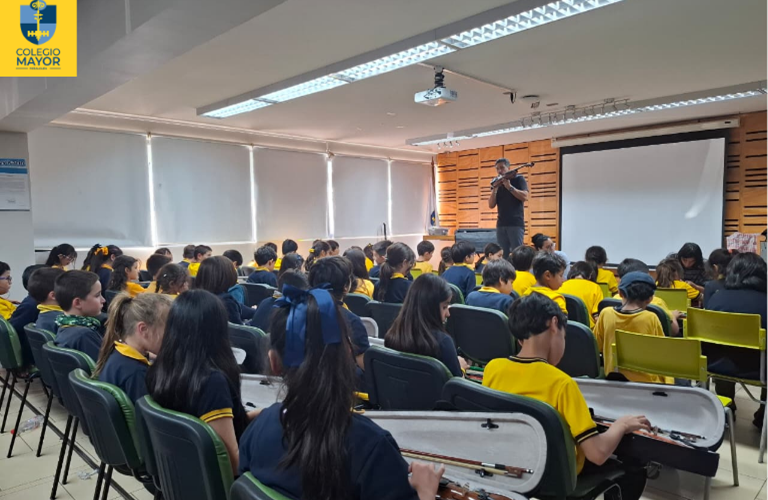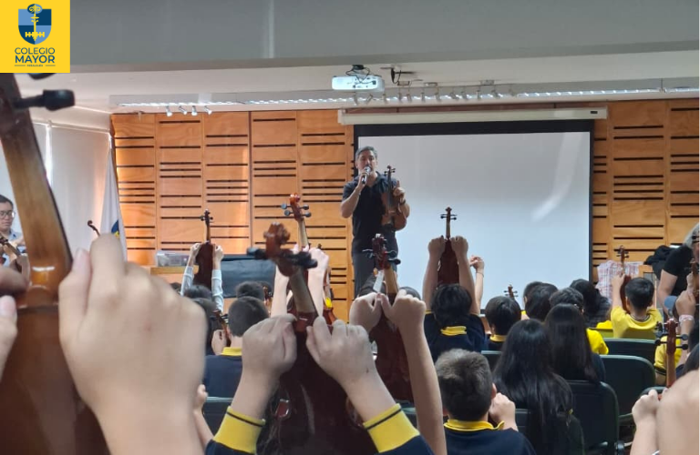 Hace algunos días, el Colegio Mayor Peñalolén dio inicio a las clases de violín impartidas por la Academia Orquin, en una instancia que reunió a cerca de 100 estudiantes interesados en acercarse por primera vez a este instrumento. La jornada inaugural se desarrolló en un ambiente de entusiasmo y curiosidad, permitiendo a los alumnos explorar el violín de manera práctica y colectiva.